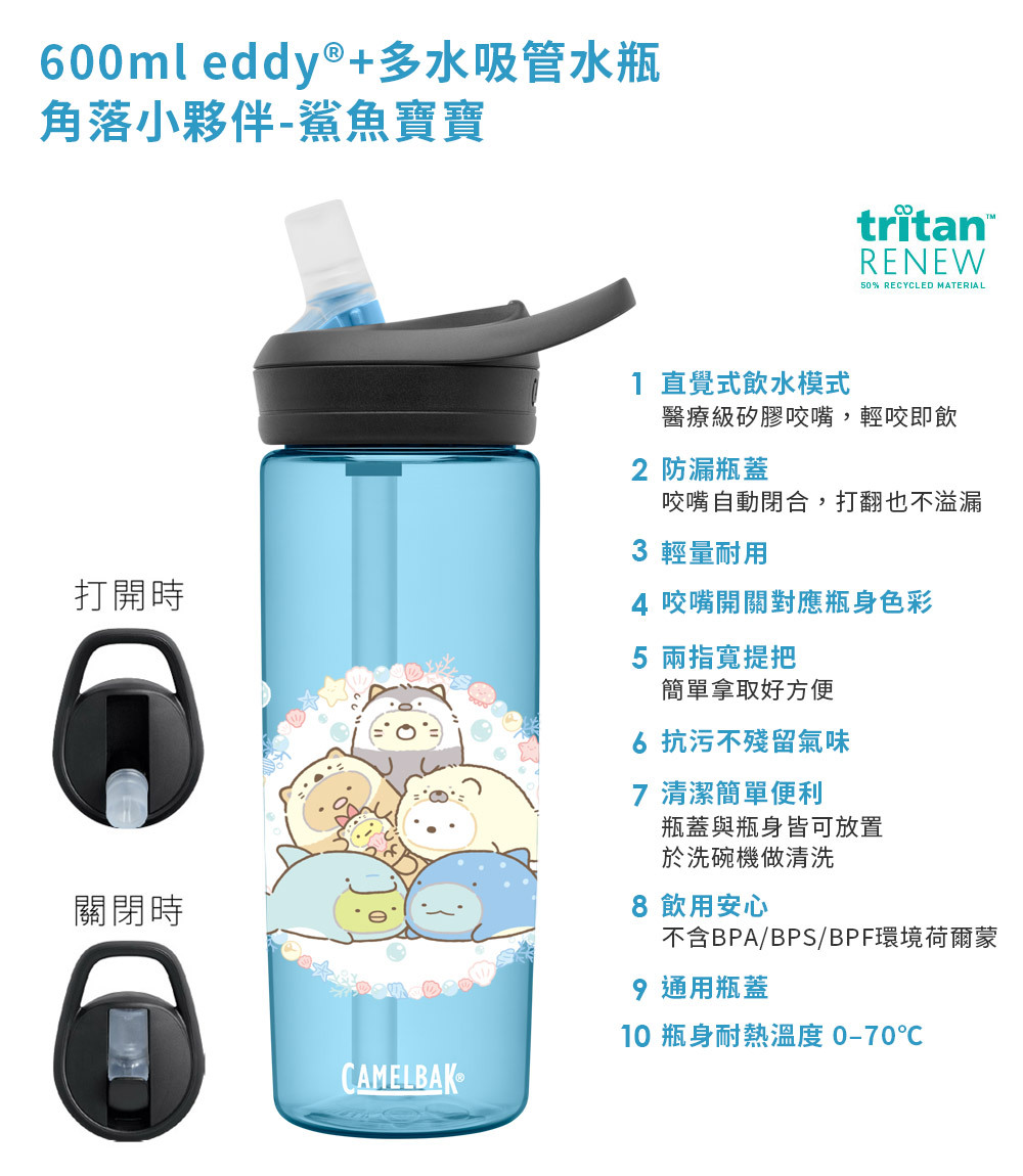 [CamelBak] 600ml eddy+ 多水吸管水瓶 角落小夥伴-鯊魚寶寶 改版出清