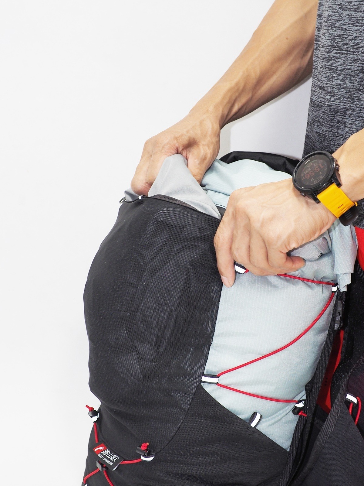 • 前方彈性網布口袋 / 左右雙通快取彈性口袋