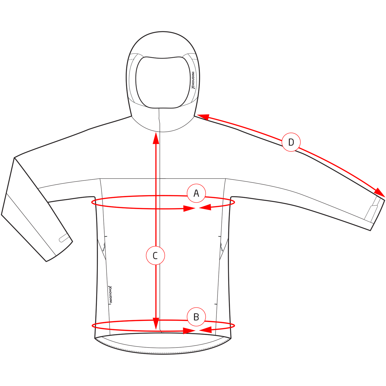 | D. Sleeve length (from neck) | 66 | 68 | 70 | 72 | 74 | 76 |