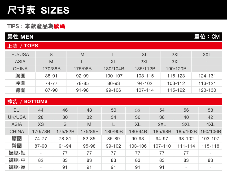 版型:運動型 Athletic Fit