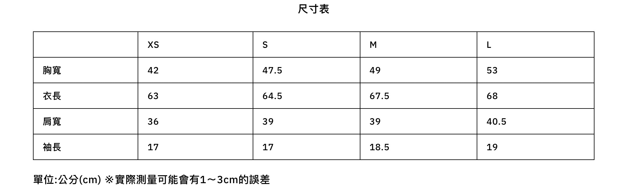 #服飾類尺寸表為身體尺寸,並非衣褲尺寸