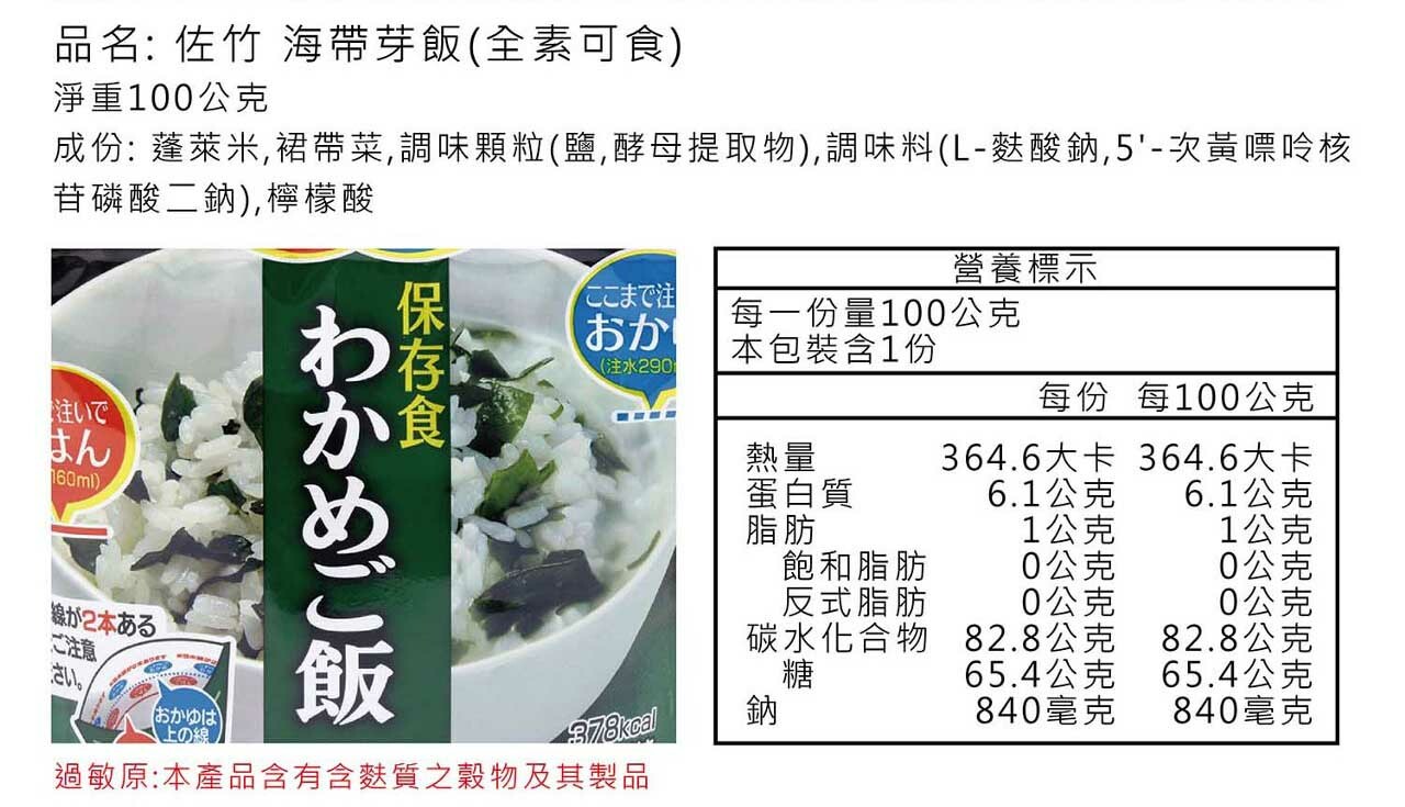 [Satake] 佐竹乾燥飯 - 海帶芽飯 (STK-0102)