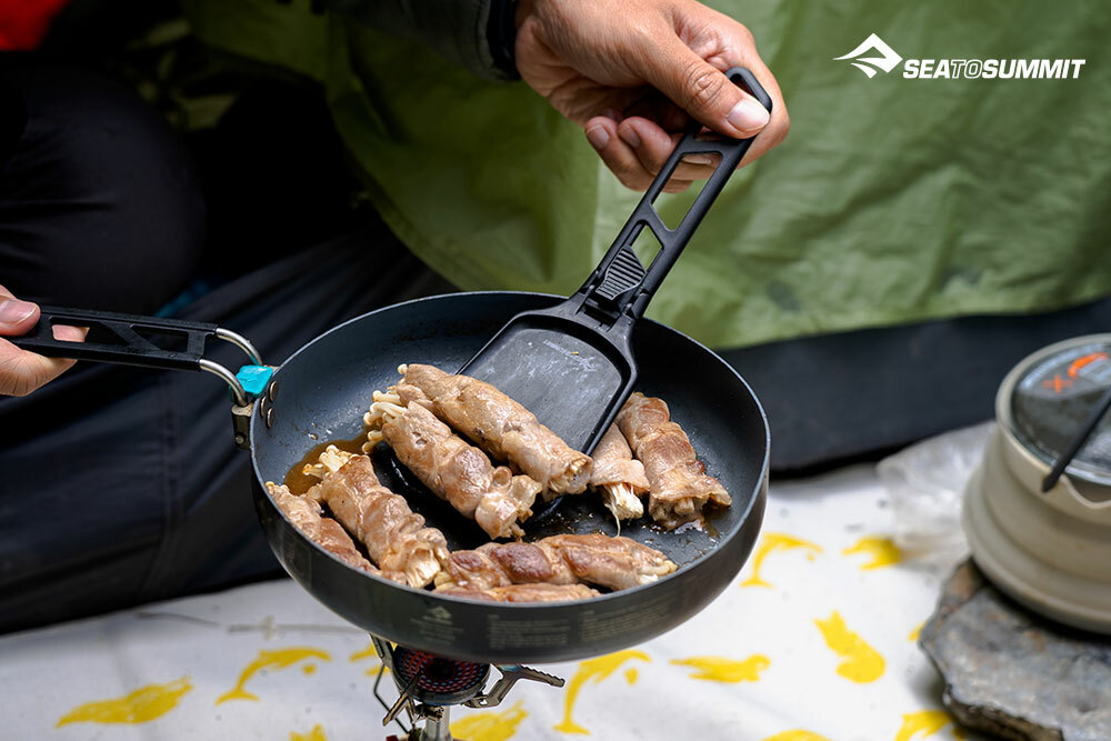 超輕量可折疊鍋鏟,容易收納攜帶。使用玻璃纖維強化尼龍,硬度夠,彈性佳手感好,耐溫達180 度,不含環境賀爾蒙,安心使用;鍋邊掛扣設計,不會弄髒餐具,折疊後尺寸小巧,可放入1.2L 折疊鍋中。