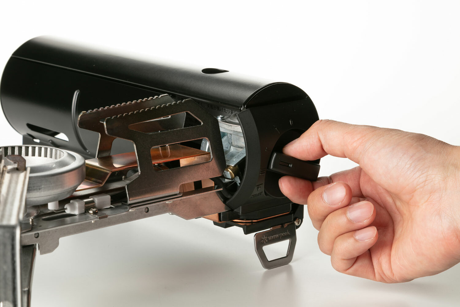 ![]() 將較佔空間的腳架以巧妙摺疊的方式收納於瓦斯罐的空間,Snow Peak 實現了卡式瓦斯爐的最強收納設計 |
