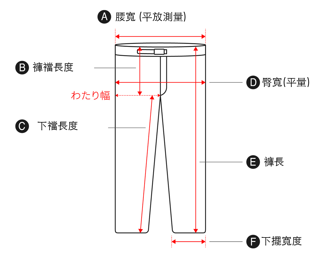 | 🅕 下擺寬度 | 26.5 | 27.5 | 28.5 | 30 | 32.5 |
