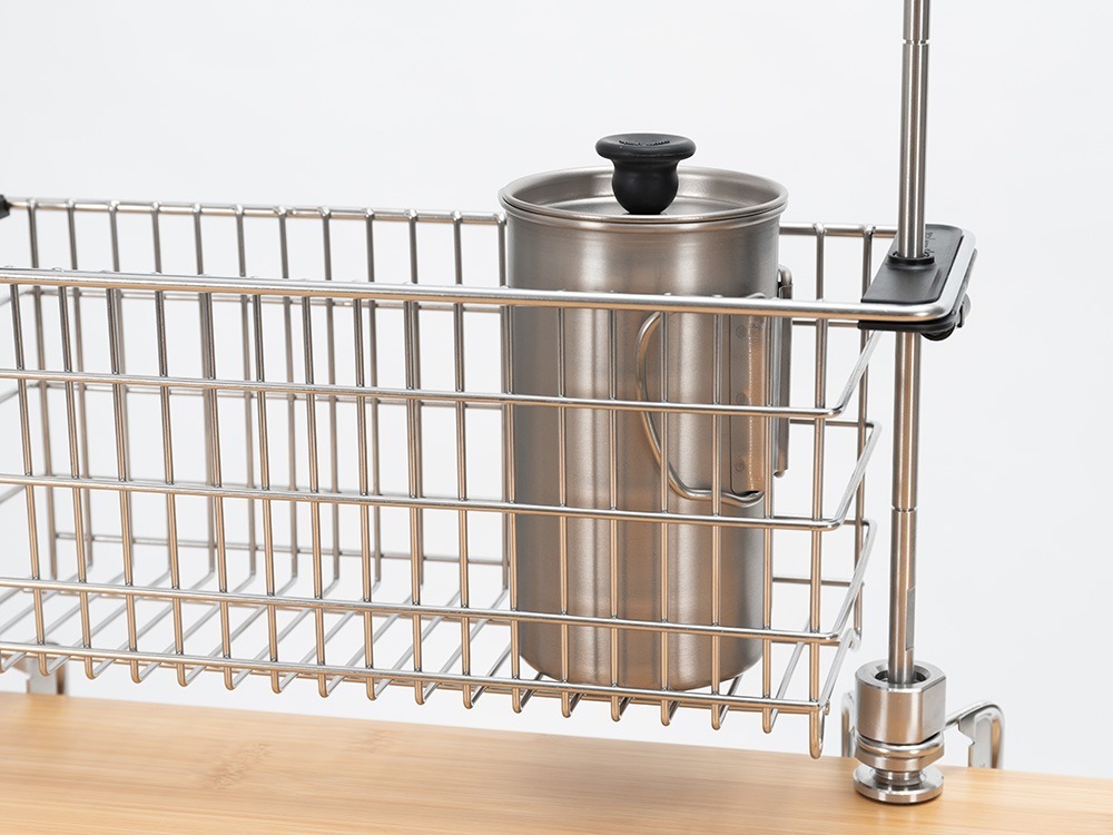 ![]() 下方短邊可吊掛餐具 ※使用本產品時,需要一個另行購買TTA桌面夾鉗(CK-300R)*2,購買時請注意。 |