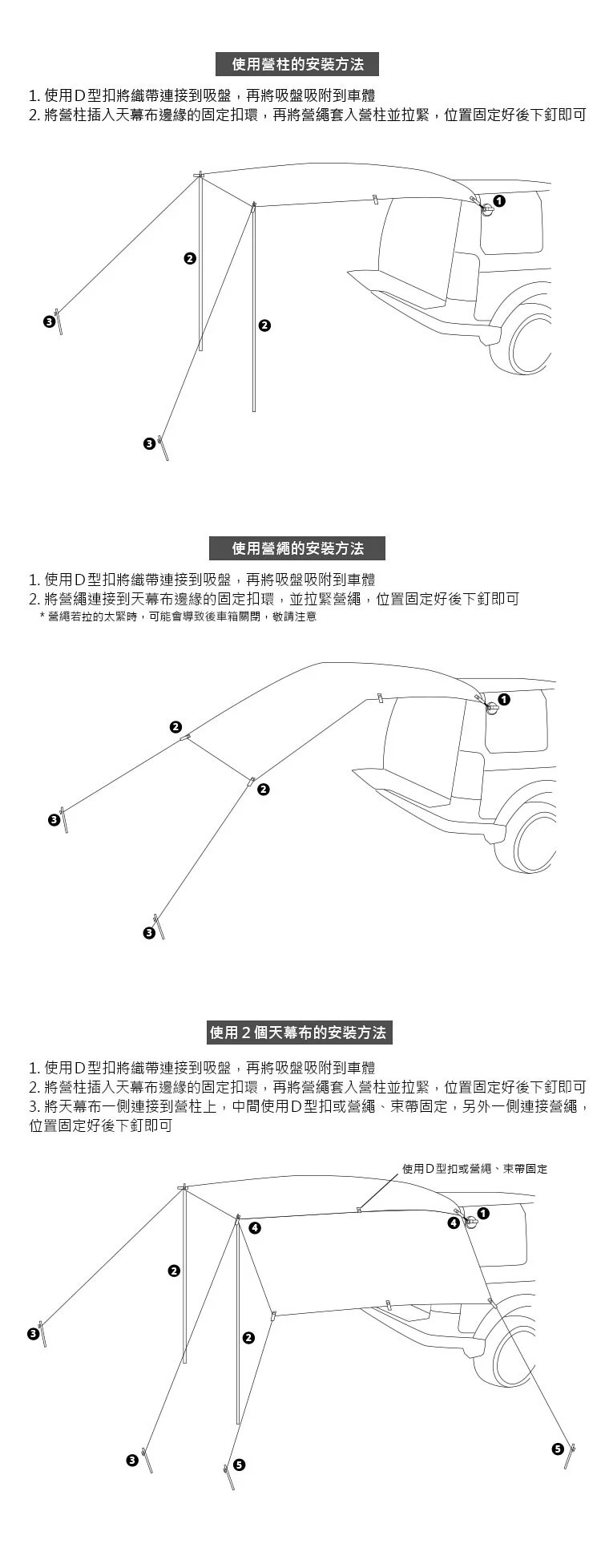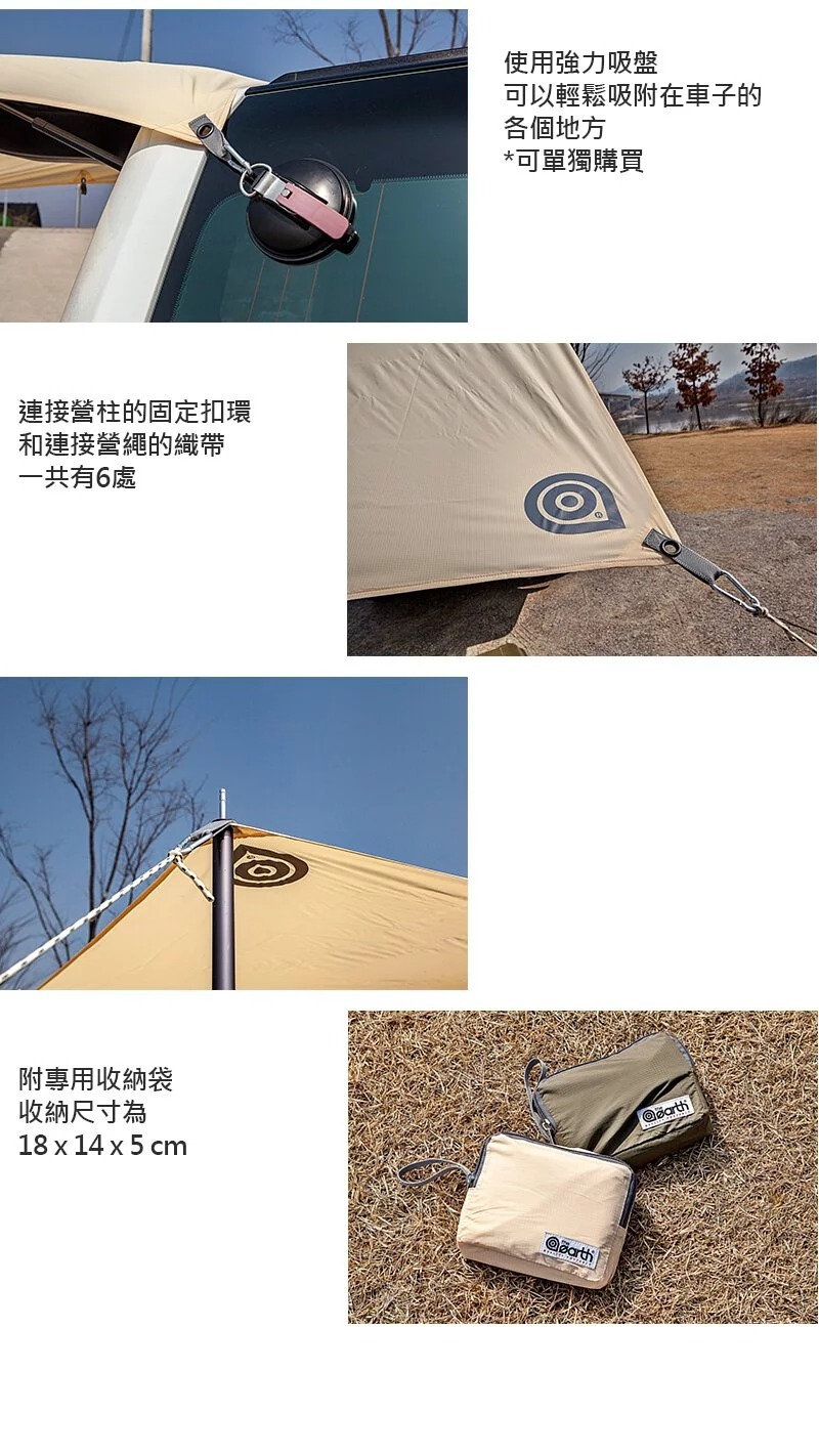 | 內容物 | 天幕、收納袋 (此商品不包含:營柱、營繩、強力吸盤,需另購) |