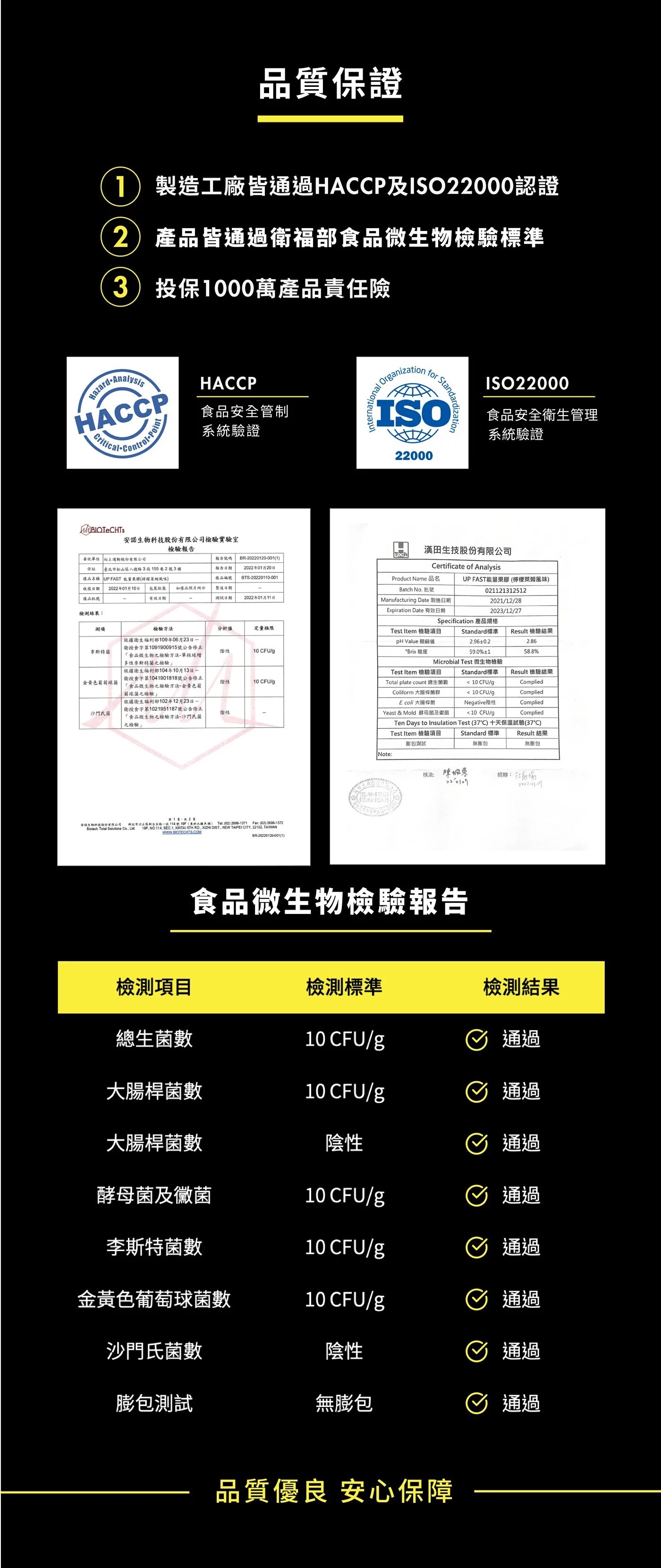 | 備註 | ▲本產品含牛磺酸500毫克,過敏者應避免食用 ▲全素可使用 |