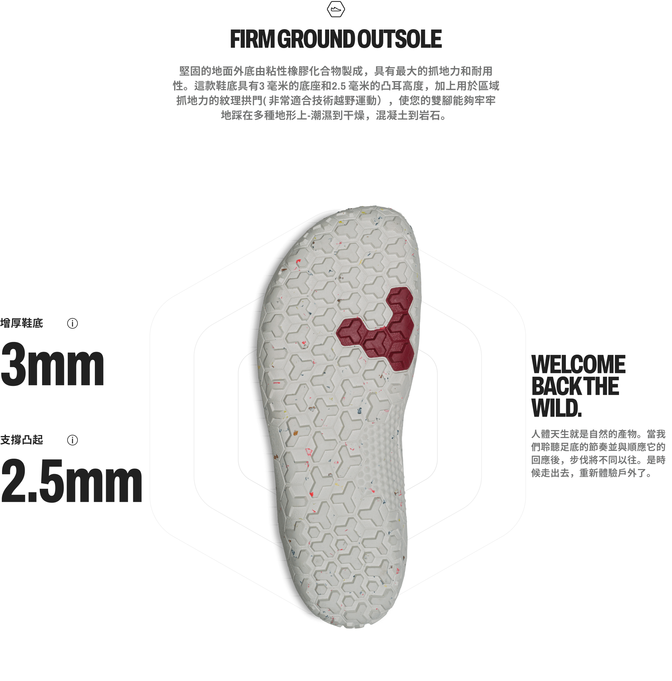 | 商品特色 | Primus Trail II FG首先是一款越野跑鞋,同時也擅長快速登山和健行。它的低調設計甚至使其在urban-outdoor的生活方式中廣受歡迎,包括高強度間歇訓練和力量訓練。 寬、薄、靈活的結構在不平坦的地面上提供了極高的靈敏度和自然的移動性。快速繫帶系統可實現快速穿脫和輕鬆調節。Firm Ground 鞋底可平衡不同硬地地形上的靈敏度、抓地力和速度,讓每一部都自然而然地增強力量。 |