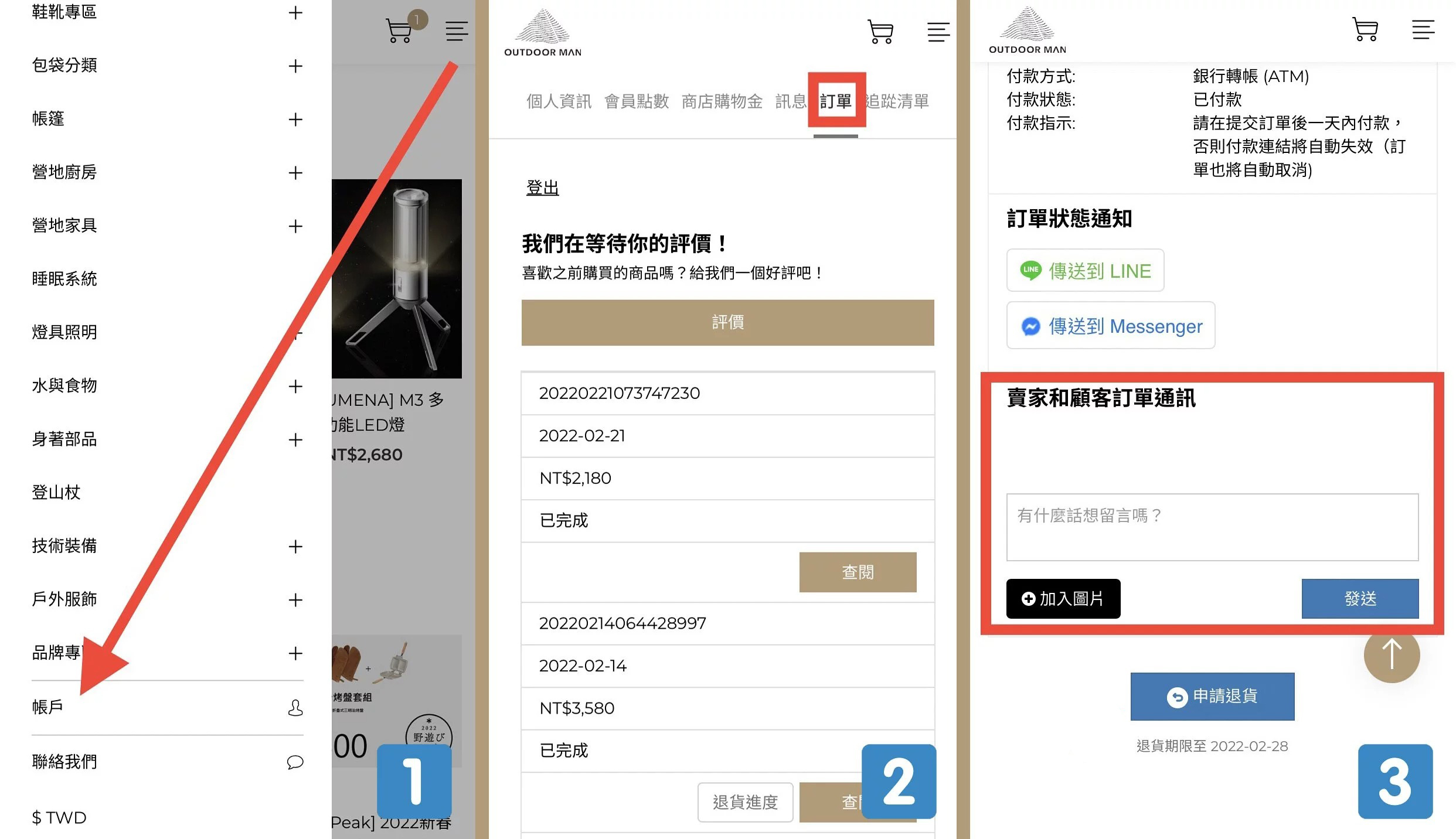 為了準確的提供您訂單的售後問題,我們強烈建議您到 //會員頁面-訂單// 並選擇到該筆訂單下進訊息傳送。
