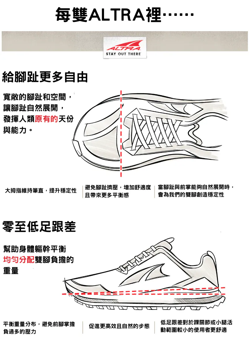 Olympus 有著33mm超厚的鞋底,提供滿滿的減震能力,還搭載最頂級的防滑大底Megagrip,想要走得更速更輕更舒服,從此以後就交給ALTRA了。 ・GORE-TEX 防水技術 ・Vibram® Megagrip 外底在潮濕和乾燥條件下均表現出色 ・在鞋後跟上做一個U型加高改動,加上跟腱凹槽的結構提升整體的穩定性 ・高周波貼合處加上縫線強化 |
