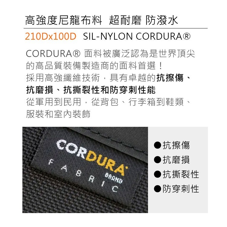 210Dx100D抗撕裂尼龍,超耐磨、防潑水