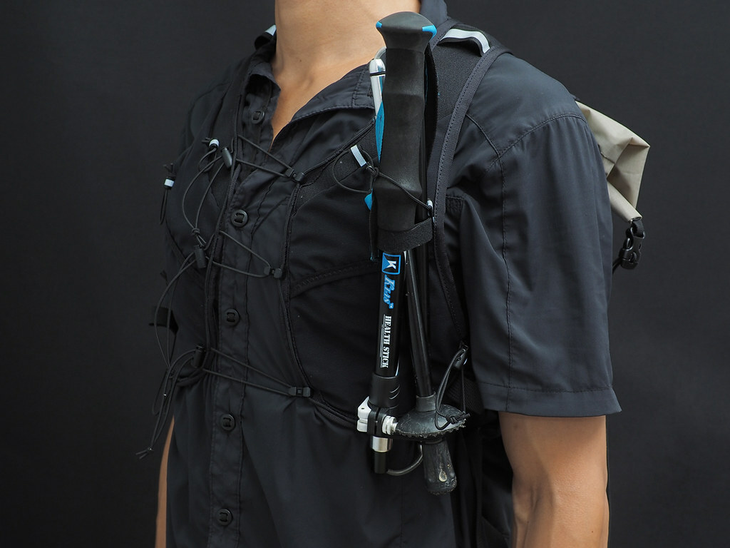 • 登山杖肩前外掛機能