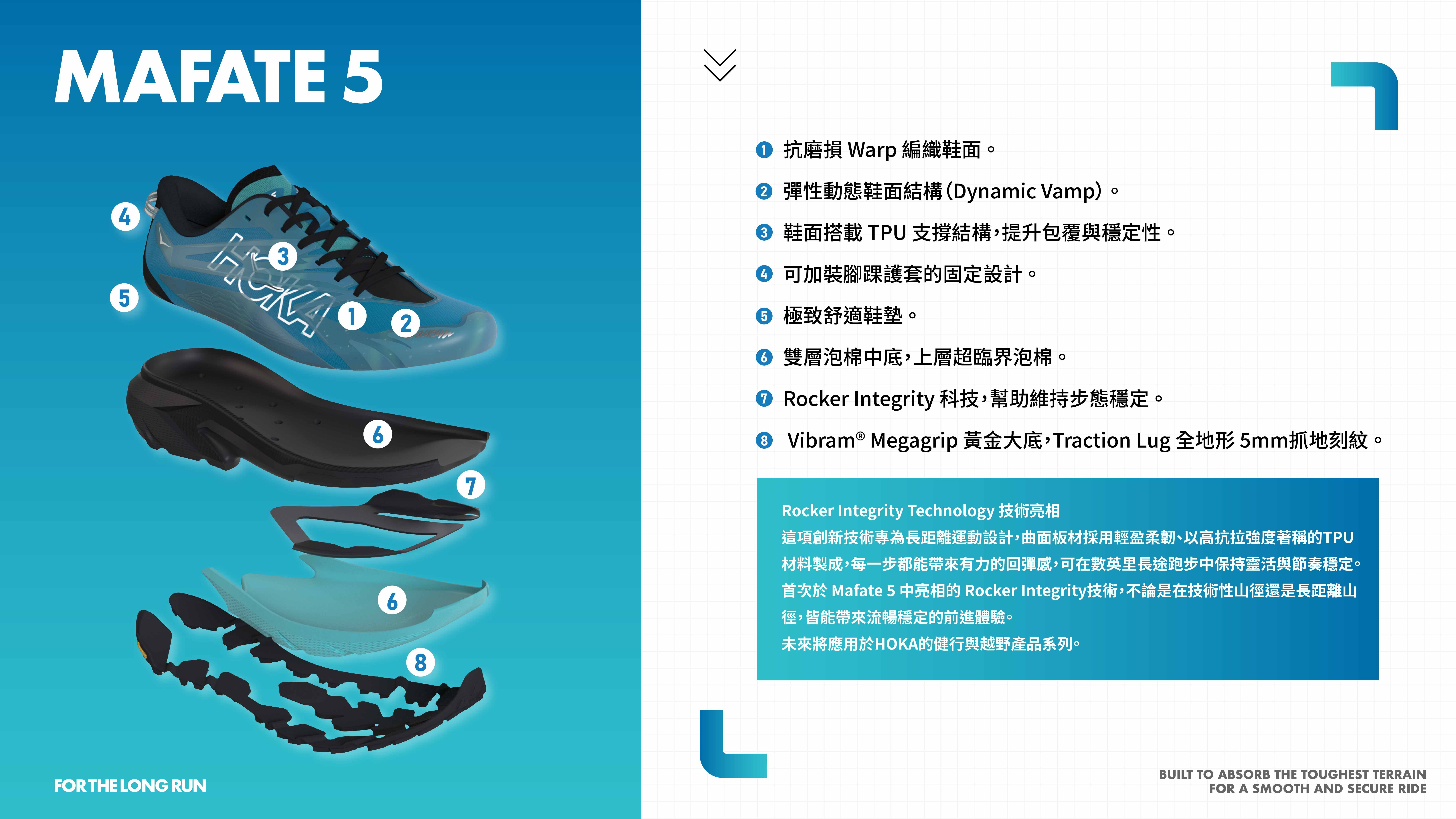 專為高技術山徑打造,Mafate 5 提供比以往更卓越的緩震性能與全方位保護。