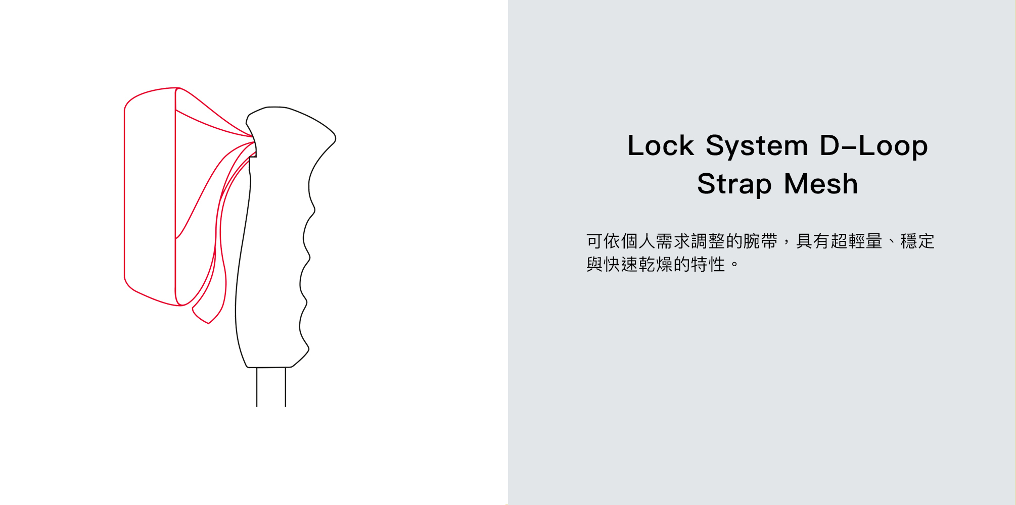 | 腕帶 | Lock System D-Loop Strap Mesh (D型環網狀鎖定帶) |