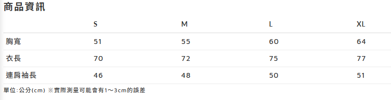 | 尺寸 | 參考尺寸表 |