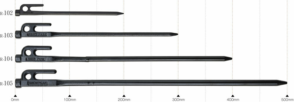 R-102:200mm(頭部φ12mm、釘入部φ6mm) R-103:300mm(頭部φ15mm、釘入部φ8mm) R-104:400mm(頭部φ15mm、釘入部φ10mm) R-105:500mm(頭部φ15mm、釘入部φ12mm) |
