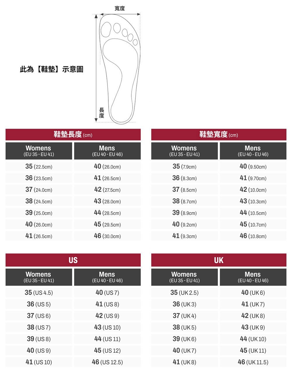| 重量 (單腳) | 239g (EU 42|UK 8|US 9) |