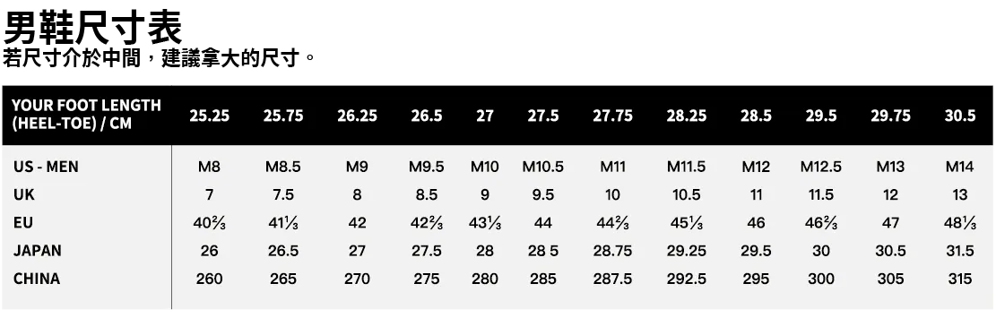 | 尺寸建議 | 由於鞋面結構極度緊湊貼合,建議選購比平常尺碼大半號,以取得最佳舒適感。 |